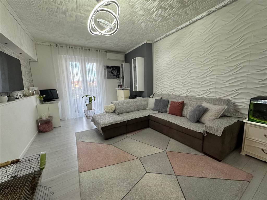 Composto da : ingresso, soggiorno, cucina abitabile, doppi balconi, camera da letto matrimoniale, camera da letto singola e un servizio.