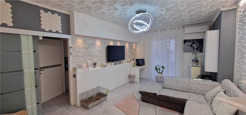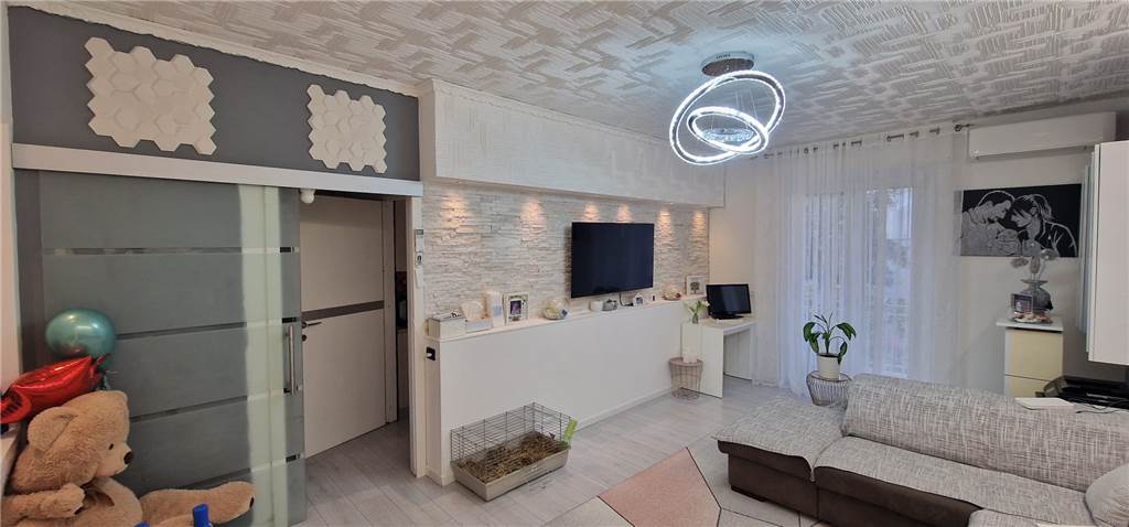 Composto da : ingresso, soggiorno, cucina abitabile, doppi balconi, camera da letto matrimoniale, camera da letto singola e un servizio.